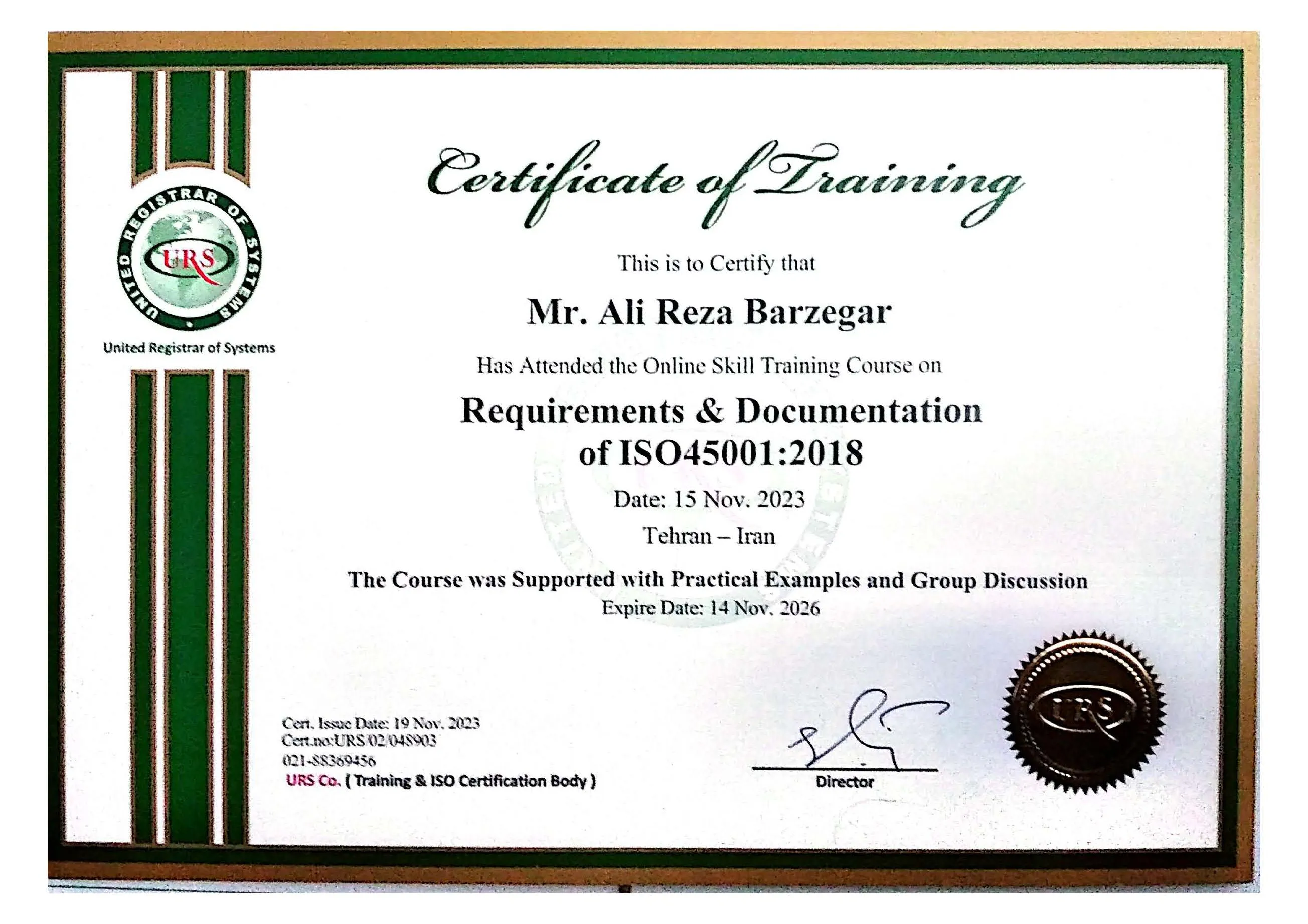 گواهینامه ISO 45001:2018 ایمنی و سلامت شغل
