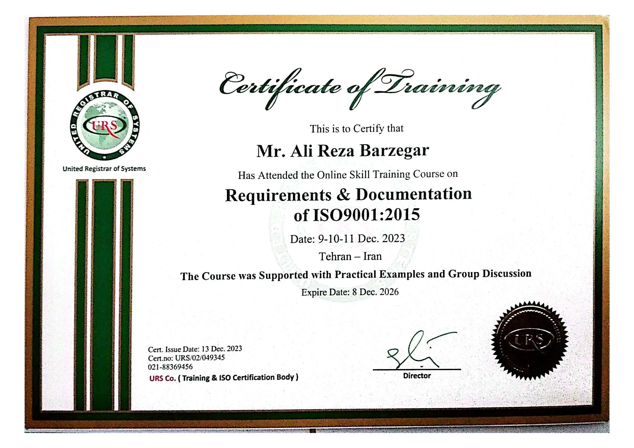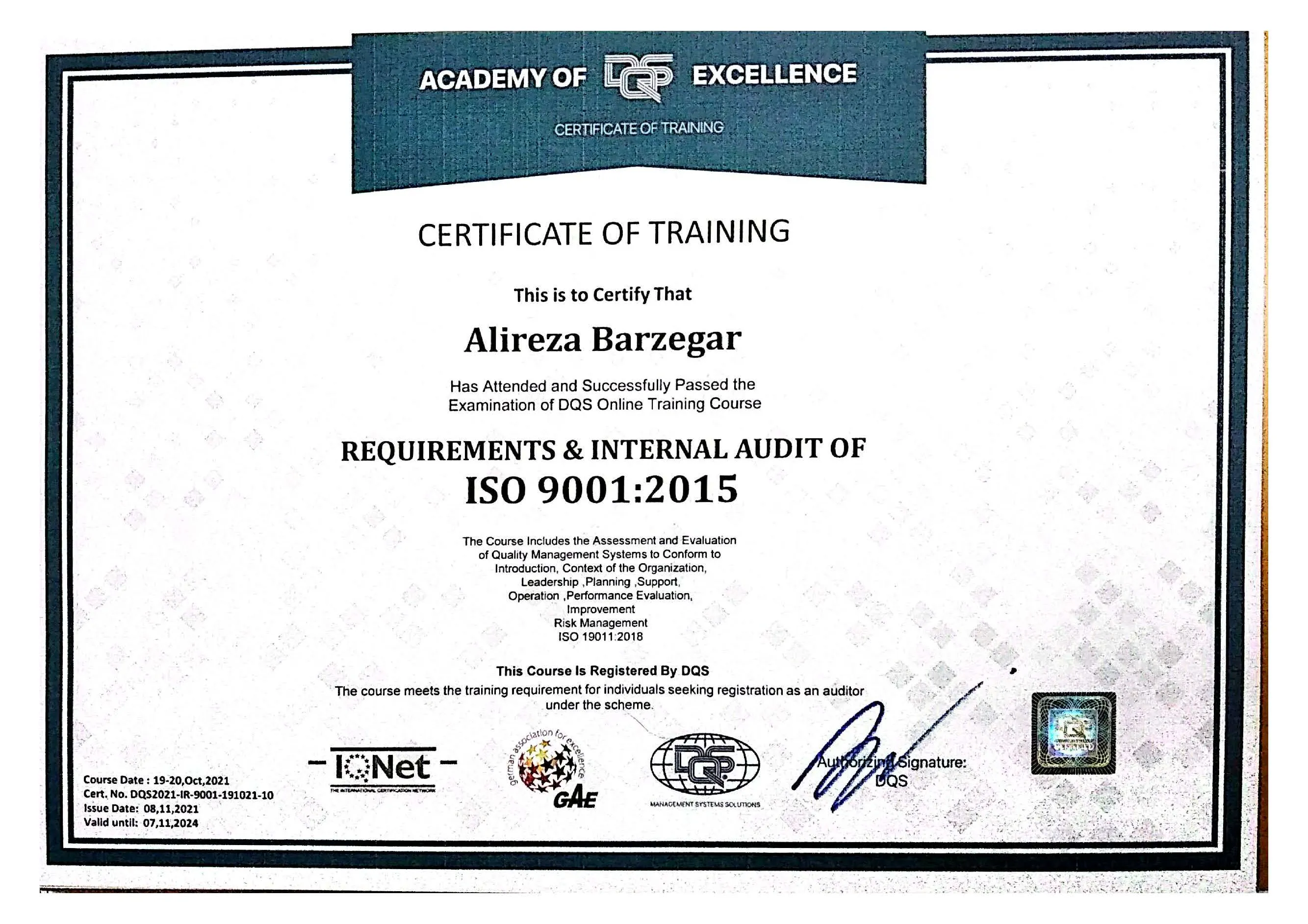 گواهینامه الزامات و ممیزی داخلی ISO 9001:2015