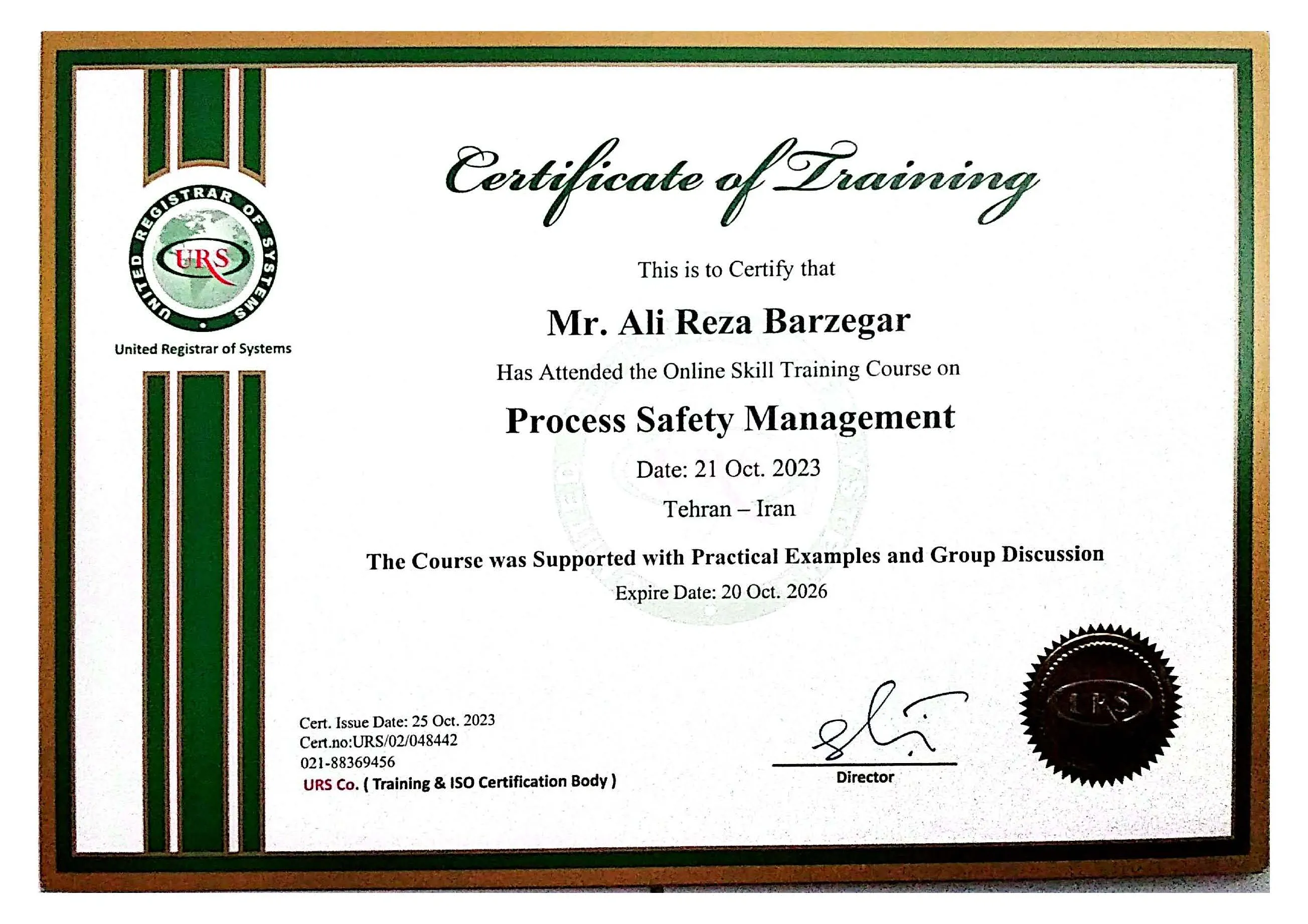 گواهینامه مدیریت ایمنی فرآیند بازار ابزار ایران