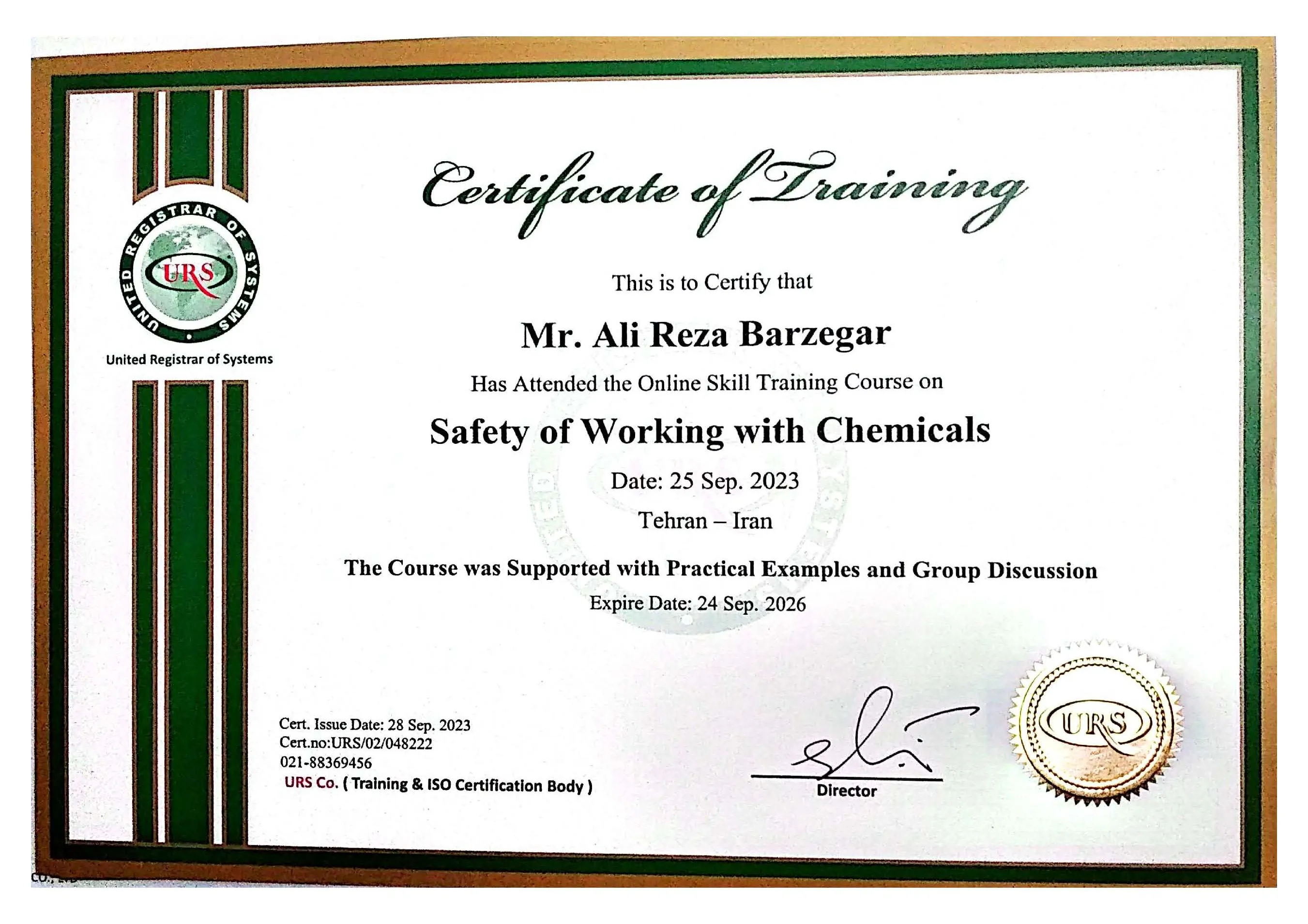گواهینامه ایمنی کار با مواد شیمیایی بازار ابزار ایران