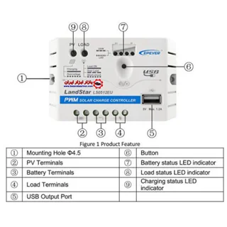 شارژ کنترلر 5 آمپر PWM مدل LS0512EU دارای USB برند EPEVER