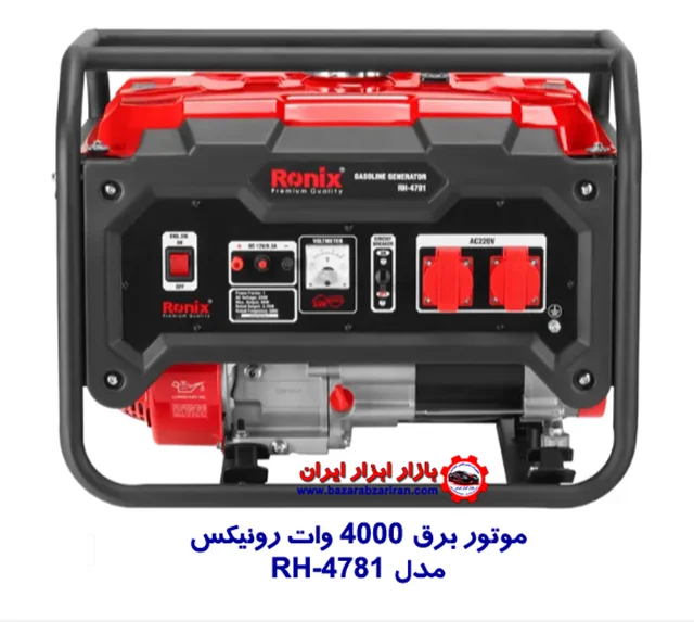 موتور برق رونیکس 4000 وات مدل RH-4781 یکی دیگر از ژنراتورهای قدرتمند و پرکاربرد است که برای تامین برق در مواقع اضطراری و همچنین استفادههای صنعتی و خانگی طراحی شده است. در ادامه مشخصات فنی این دستگاه آورده شده است: