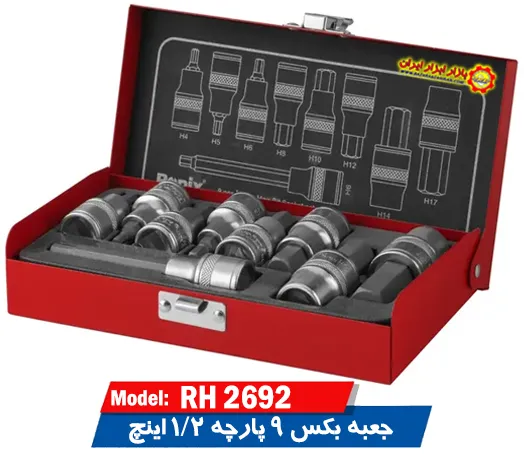 مدل RH-2692 دارای درایو 1/2 اینچ و 9 عدد بکس است، در حالی که RH-2695 ترکیبی از سه سایز (1/2، 1/4، 1/8) و 14 قطعه دارد.